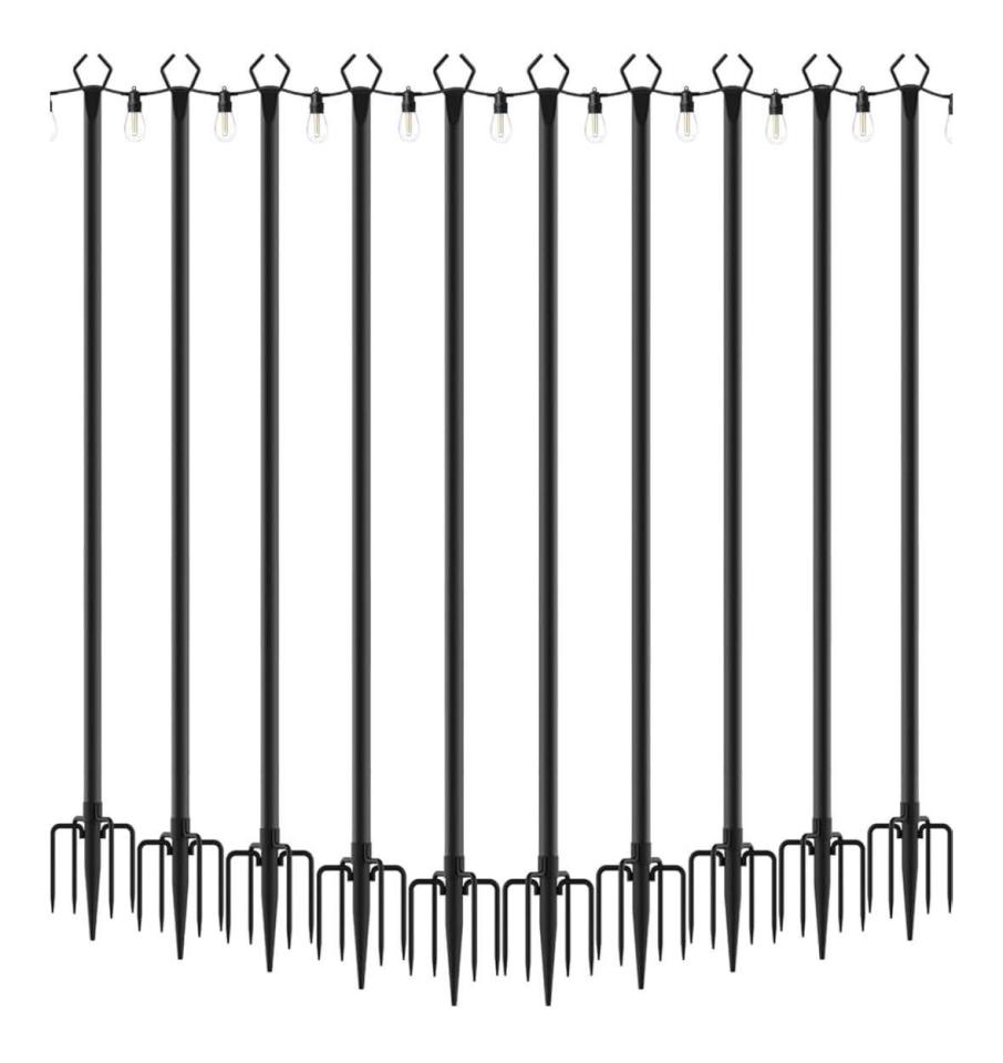 Sleek black metal pole designed to elevate string lights for outdoor events. Its sturdy and stylish build adds height and structure, creating a warm and elegant atmosphere for any occasion.